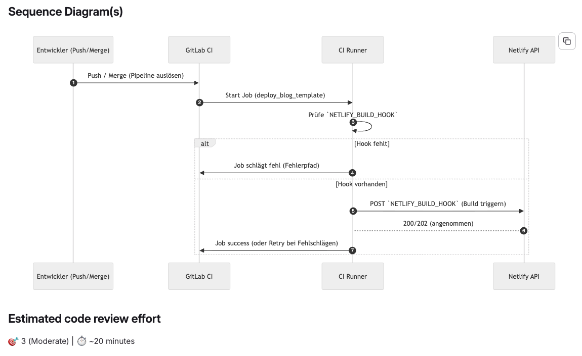 Wichtig zu wissen: Die detaillierten Inline-Kommentare direkt im MR oder PR sind ein Feature des Pro-Plans (ab $24 pro Entwickler und Monat). Im kostenlosen Plan bekommt man eine Zusammenfassung und einen Walkthrough — hilfreich für einen schnellen Überblick, aber nicht vergleichbar mit dem vollen Zeile-für-Zeile-Review.